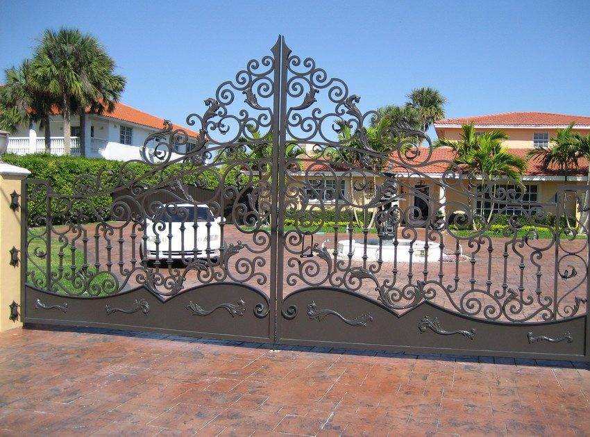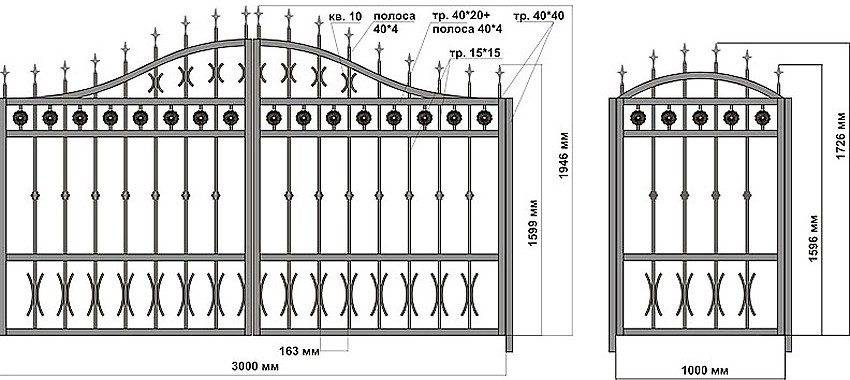 Важно продумать геометрию створок. Форма может быть любой: от классической квадратной, до эксклюзивной, с ломаными верхними чертами, радиусом или эллипсом. Также важна высота и ширина конструкции, благосклонность ребер жесткости, подбор фурнитуры, расстояние между элементами ковки