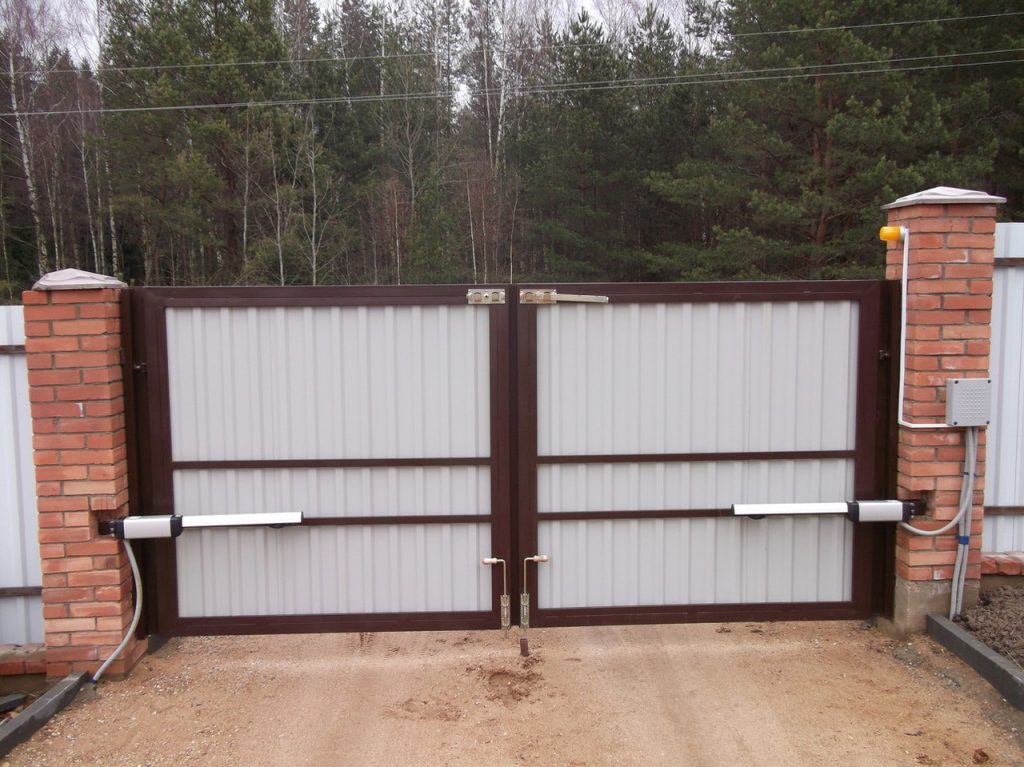 Главным недостатком в использовании распашной конструкции считается наличие свободного пространства для открытия створок. Особенно неудобно ей пользоваться во время зимнего периода, когда появляется необходимость расчищать снег, чтобы заехать или выехать во двор автотранспорту.