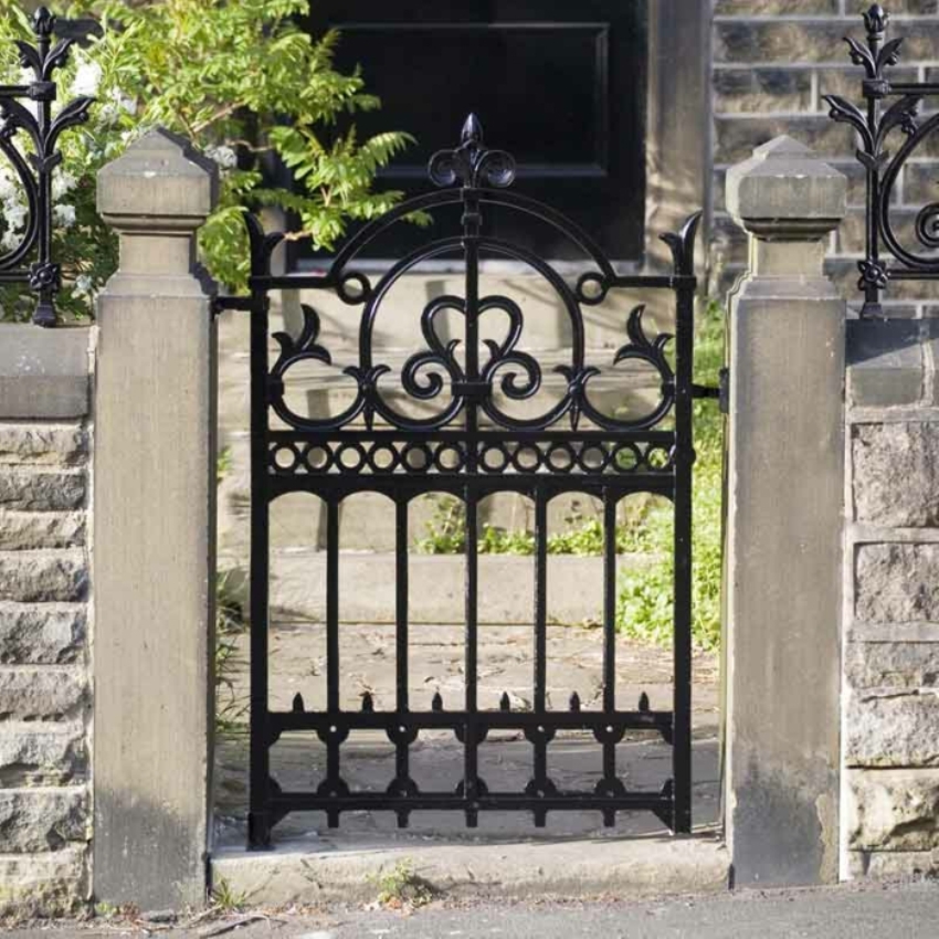 Кованая калитка и забор могут быть расположены на разной высоте