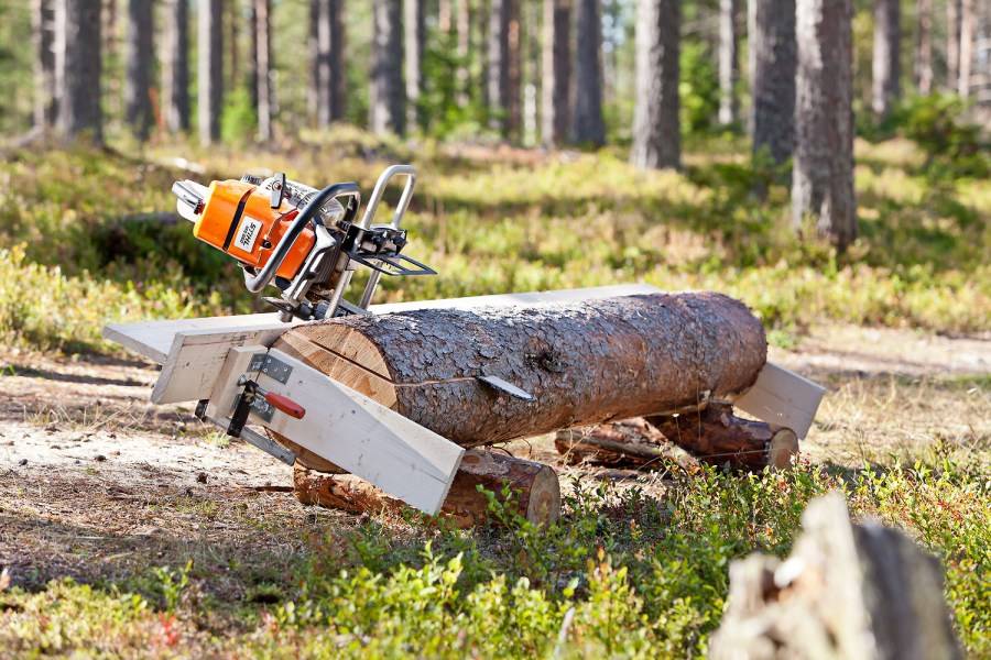 - Мастер сможет самостоятельно регулировать длину колодок, на которых пилится бревно.