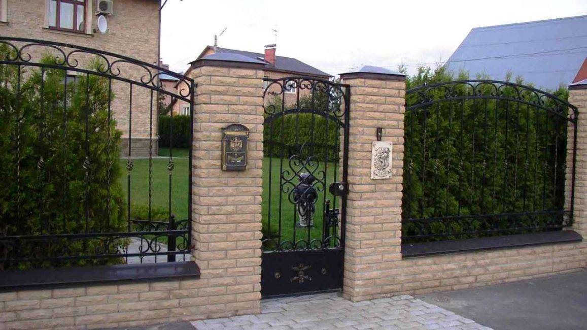 Обычно из кирпича сооружают столбы, фундамент и другие несущие конструкции. Профилированные листы, штакетник, металлические сварные или кованые конструкции используют для изготовления секций.