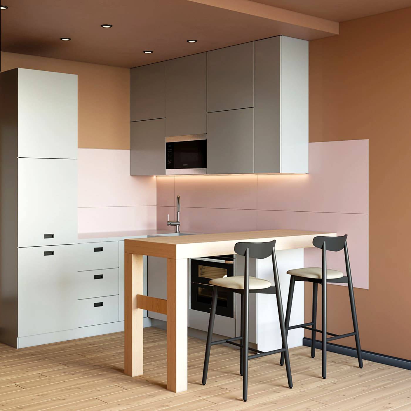 Все оттенки бежевого и коричневого считаются нейтральными. Это ещё один универсальный цвет, который удачно вписывается в любой дизайн. Бежевый благотворно действует на психику и в оформлении кухни даже повышает аппетит.