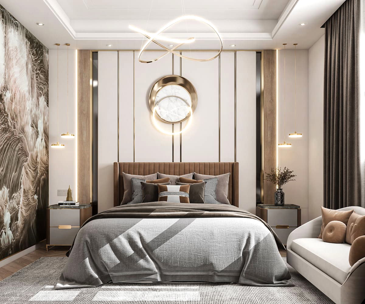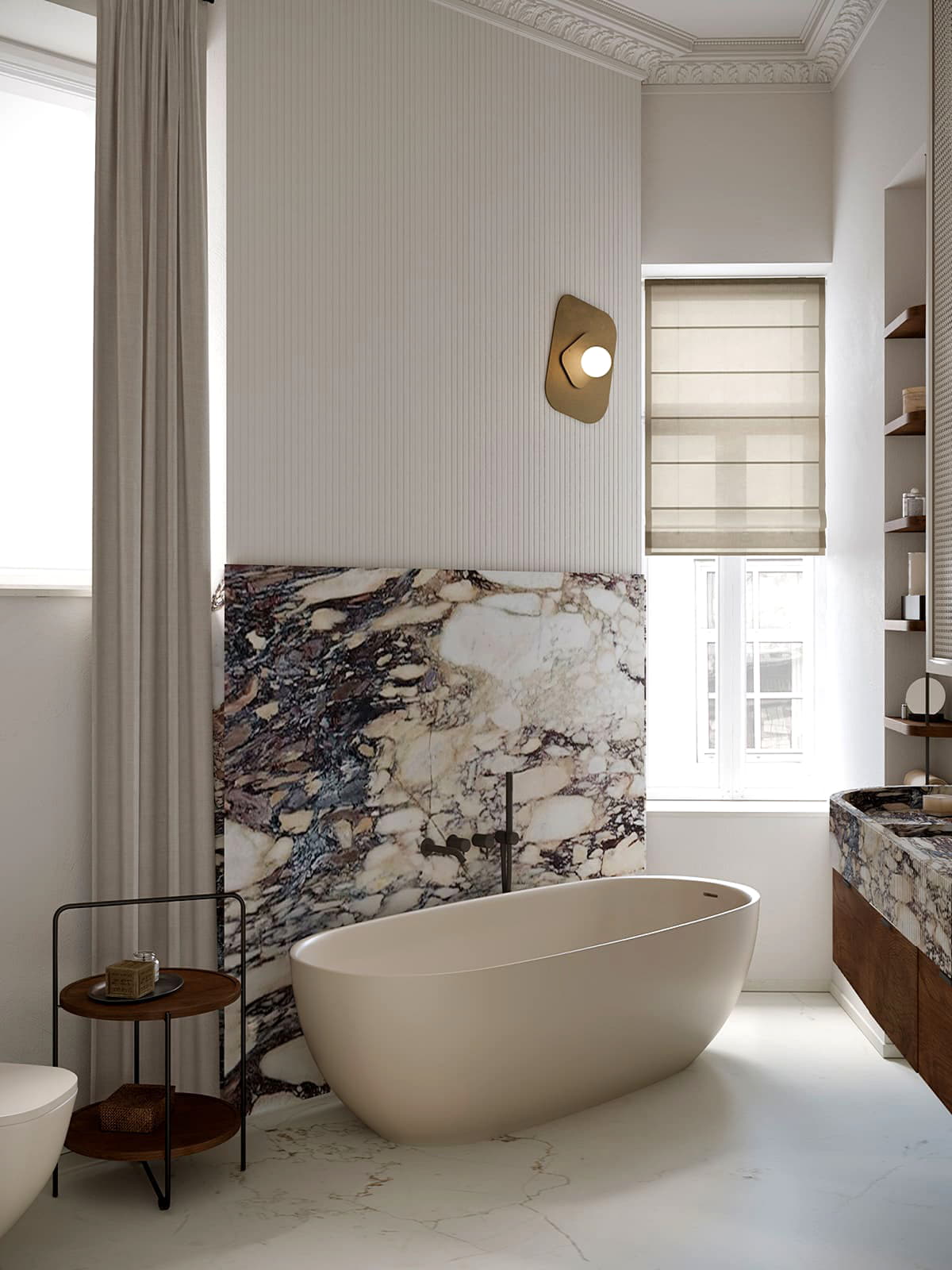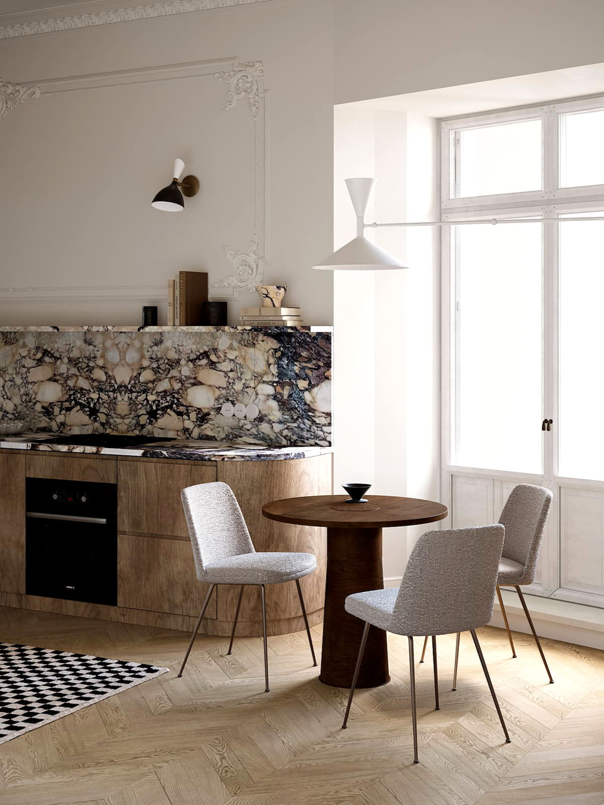 Это универсальный вариант, который использует классические сочетания материалов и цветов. В нем не будет никаких ярких неожиданностей, но именно этим он и хорош. Подходит для спокойных и уравновешенных людей, а также прекрасно будет выбрать его для пожилых или семейных пар.
