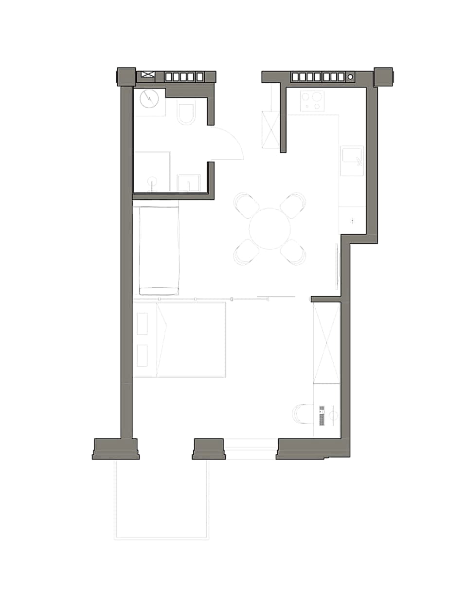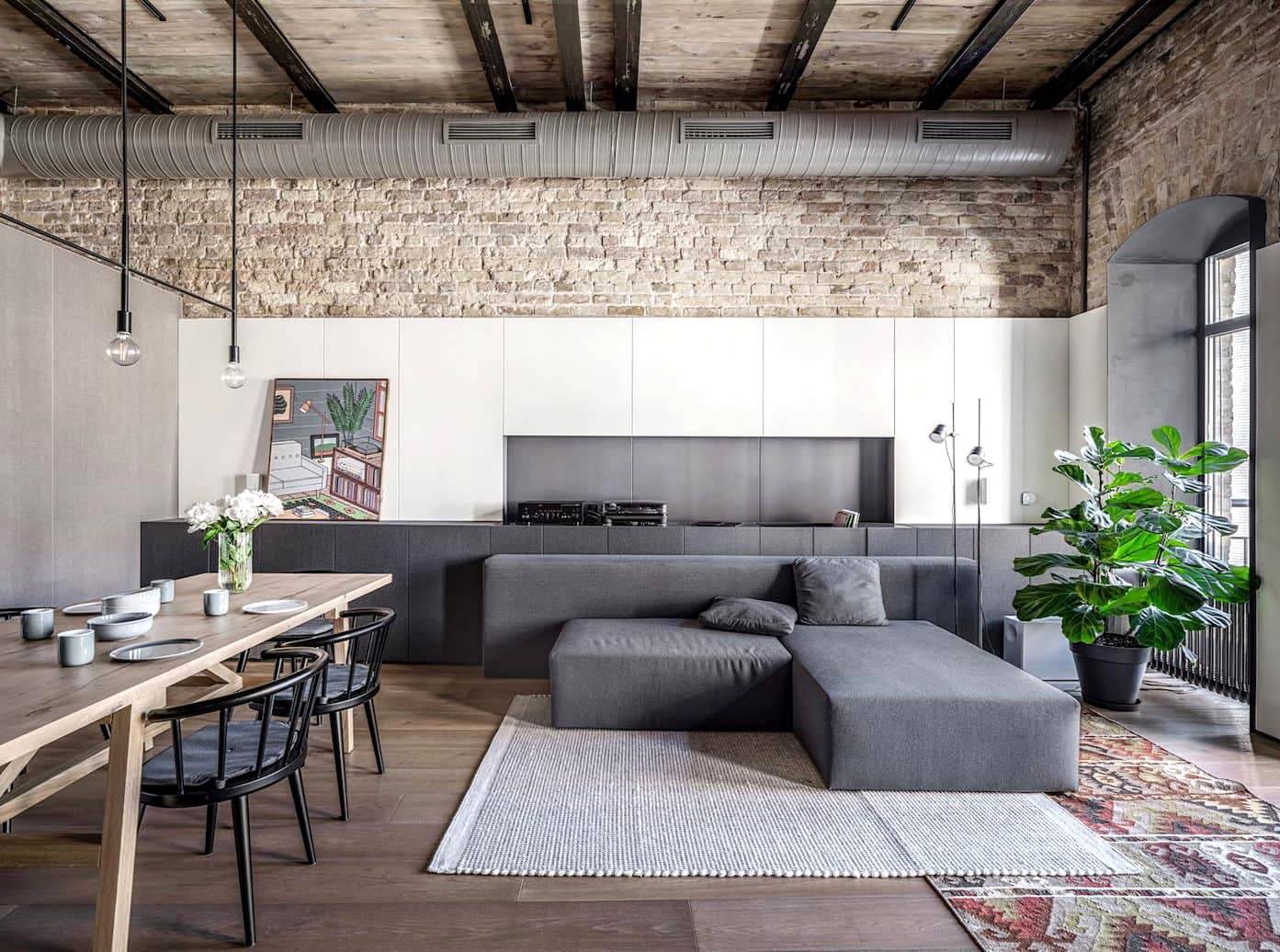 Нестандартный вариант, который требует особенно творческого подхода. Он позволяет сочетать кирпичные стены и бетонные перегородки без дополнительной отделки с уютными элементами декора помещений.