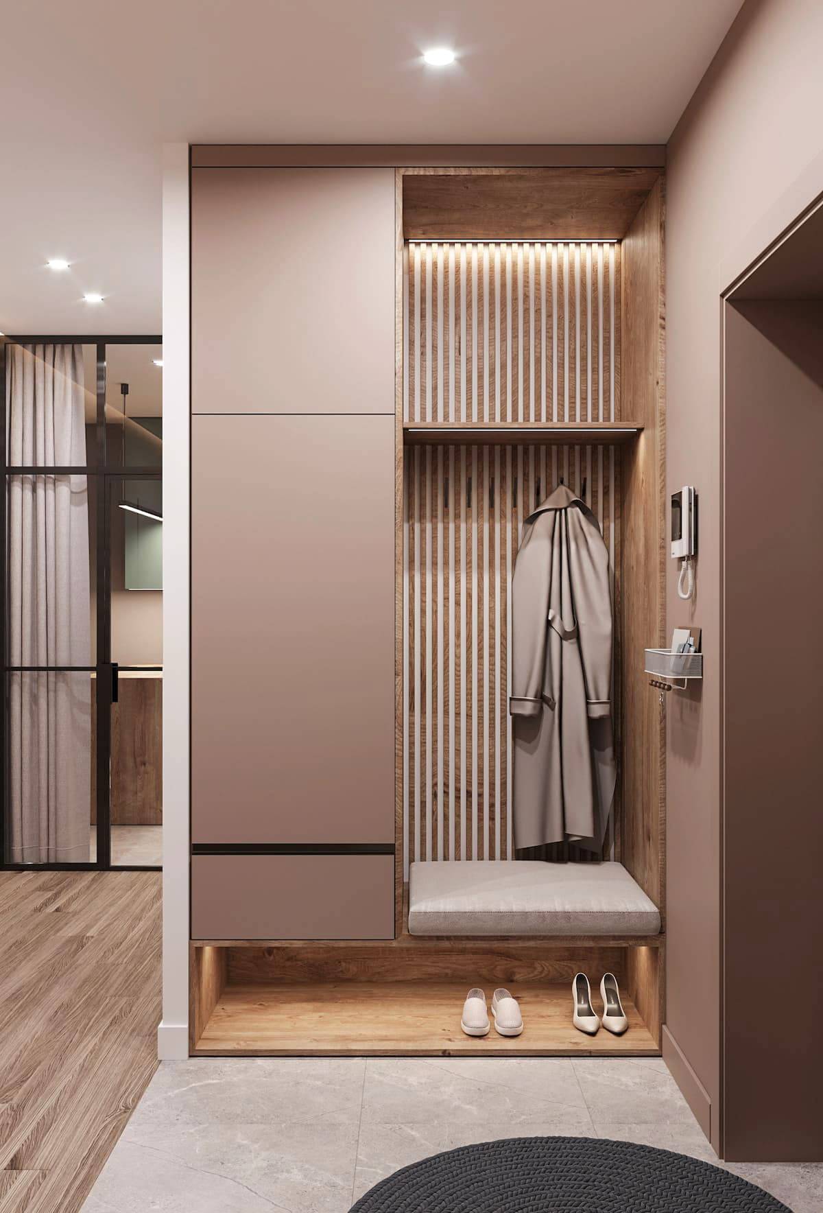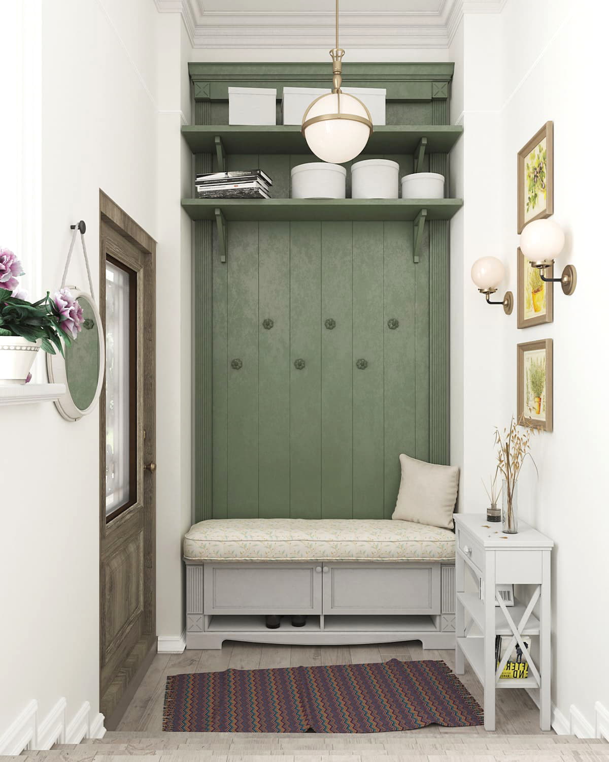 Она должна всегда быть свободной. Тут можно разместить предметы, которые потребуются при выходе на улицу, например, вешалку с крючками для одежды, обувницу.
