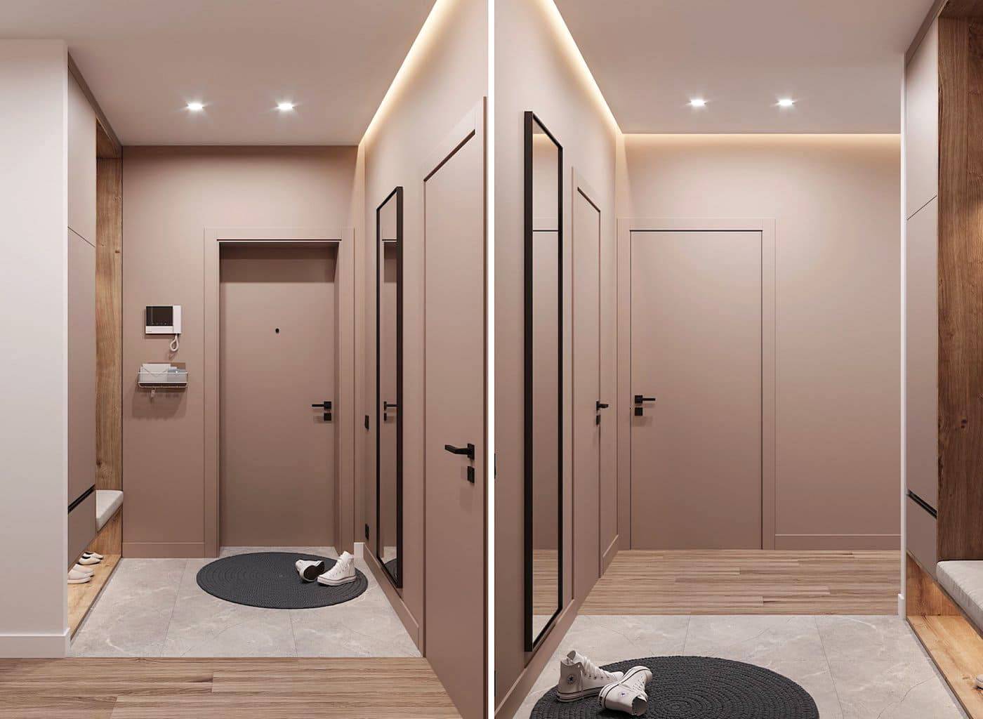 Света в проходной должно быть много, как естественного, так и искусственного. Потому не используйте для окна плотные шторы, лучше легкие прозрачные материалы. Добавьте больше источников света. Большая люстра не подойдет, потому используйте бра. Отличным решением станет точечные светильники с разной направленностью.