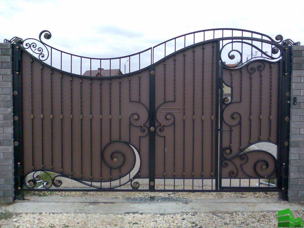 Применяются преимущественно на дачах, где общее ограждение имеет такой же стиль. Из отдельных кованых элементов сваривается вся конструкция. Как вариант — элементы ковки могут быть закреплены на ровном металлическом каркасе, придавая ему изысканность.
