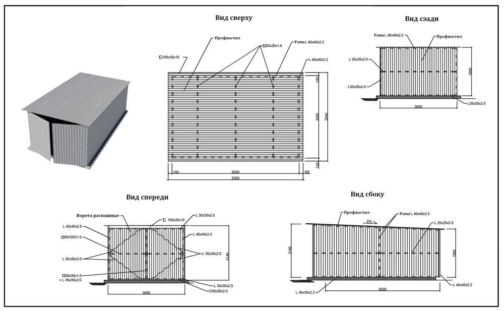 Типовые проекты гаражей из профнастила