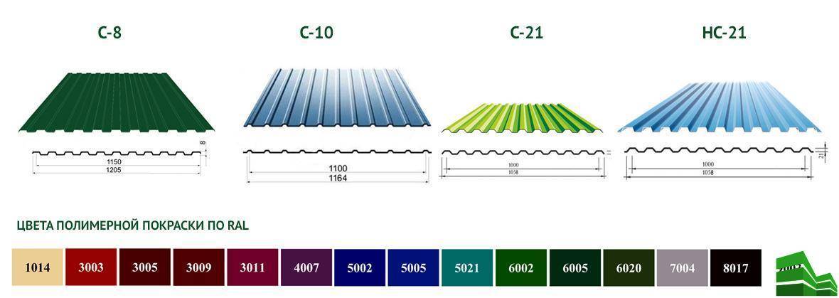 Такое покрытие неспроста называют многофункциональным строительным материалом. Все дело в наличии разных видов, которые отличаются по условиям применения, форме профиля и толщине металла. Варьируется толщина металла в профлисте от 0,35 до 0,9 мм, а ширина – от 600 мм до 1150. В заводских условиях высоту волн делают от 20 до 130 мм, о чем и говорит специальная маркировка на упаковке. Длина листа чаще такая, какую предпочитает конкретный производитель или специально заказывает покупатель.