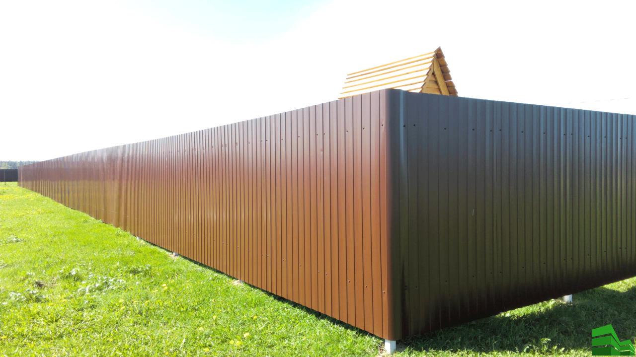 Толщина листа влияет на прочность конструкции. Вертикальное положение листов в конструкции определяет направление нагрузок в точках крепления. Если металл тоньше 0.45 мм (защитное покрытие не учитывается), сильный ветер может его оторвать или деформировать. Если забор будет эксплуатироваться на протяжении длительного времени, толщина листов должна быть не меньше 0.45 миллиметров.