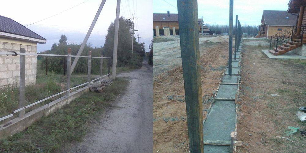 - отдельные столбы, забетонированные в грунтовых гнездах;
