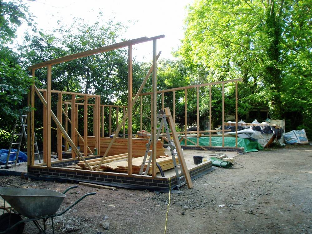 - Установить по предполагаемому периметру опоры, каркас из бруса.
