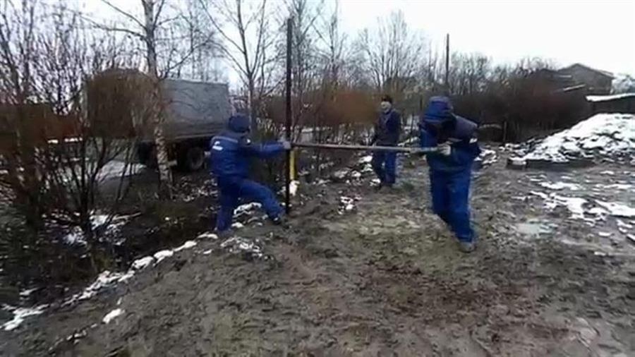 Первым делом определяем место и вкручиваем металлические винтовые сваи