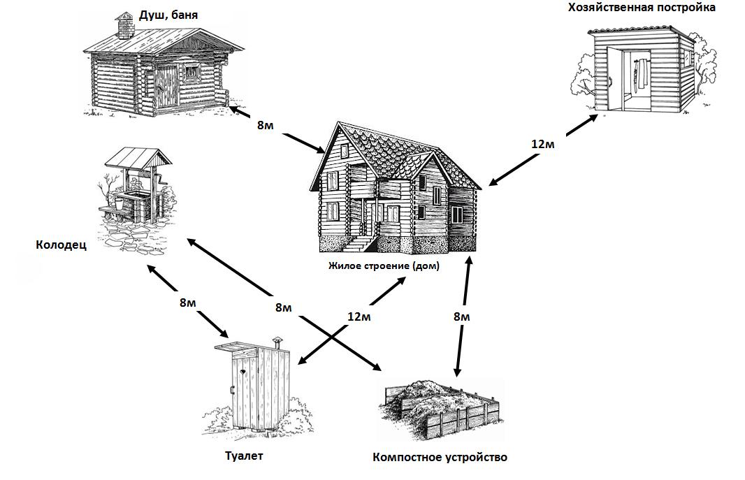 Минимальные допустимые расстояния между некоторыми объектами на даче