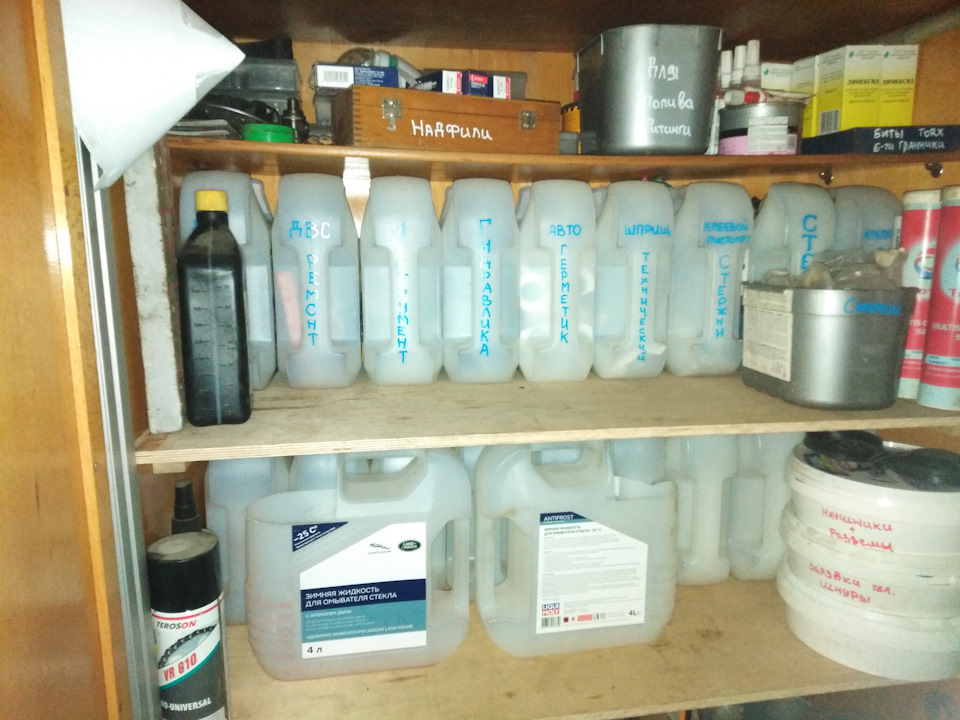 Всем привет!Всегда хочется добавь в гараж какие нибудь полочки, коробочки, да ещё и все разложить по местам, да так что бы ещё и найти необходимое было проще! Каждый художник своей мастерской и придумывает что то свое!Не могу сказать что я это придумал сам, это давно используется многими. Я лишь решил сделать все в одном стиле, что бы это хоть как то выглядело по приличнее чем разносортные коробочки. При этом это вариант легко доставать с полки, и так же есть ручка для переноса! Поэтому могу рекомендовать и вам подобную систему хранения по дешовке. Так как покупные системы все же стоят денег, а если нужно много контейнеров — то это уже вылазит в неплохую сумму денежных средств.