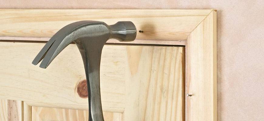 Крепеж наличников можно зафиксировать гвоздями или клеем.