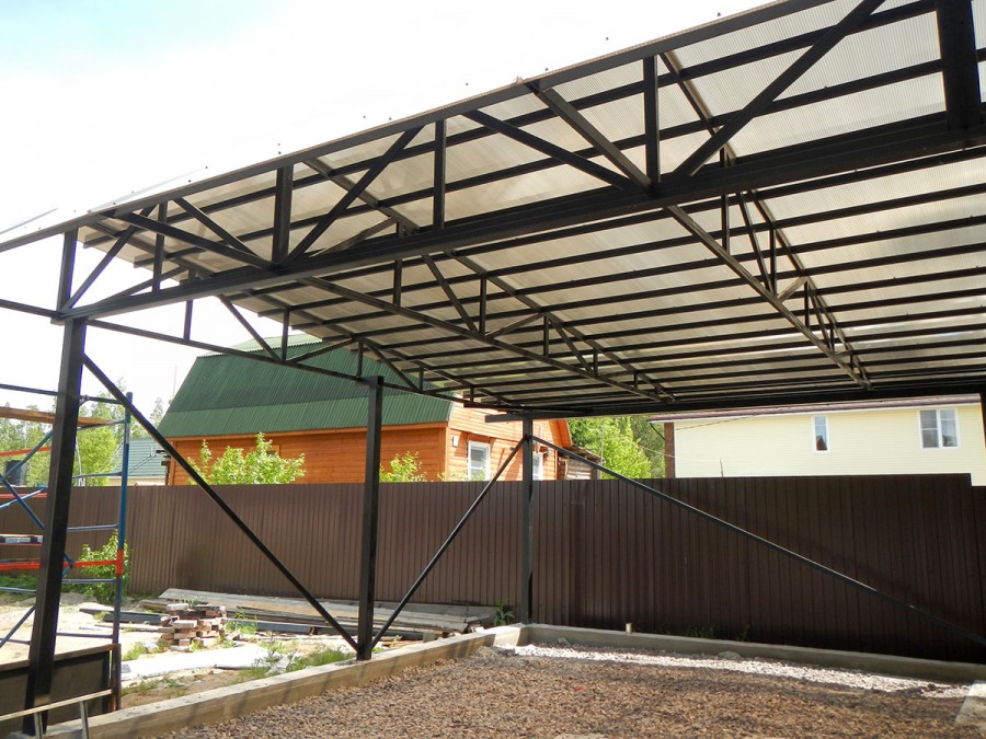 При монтаже пристроенной конструкции потребуется изготовить опоры только с одной стороны укрытия. Если выбирается отдельно расположенное укрытие, необходимо подготовить мощные опорные элементы, установленные на хорошем фундаменте.