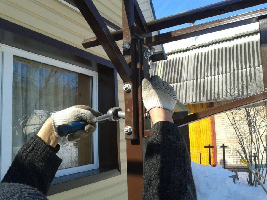 Совет! Помните, чем больше площадь козырька, тем чаще должны быть расположены перекладины опоры.