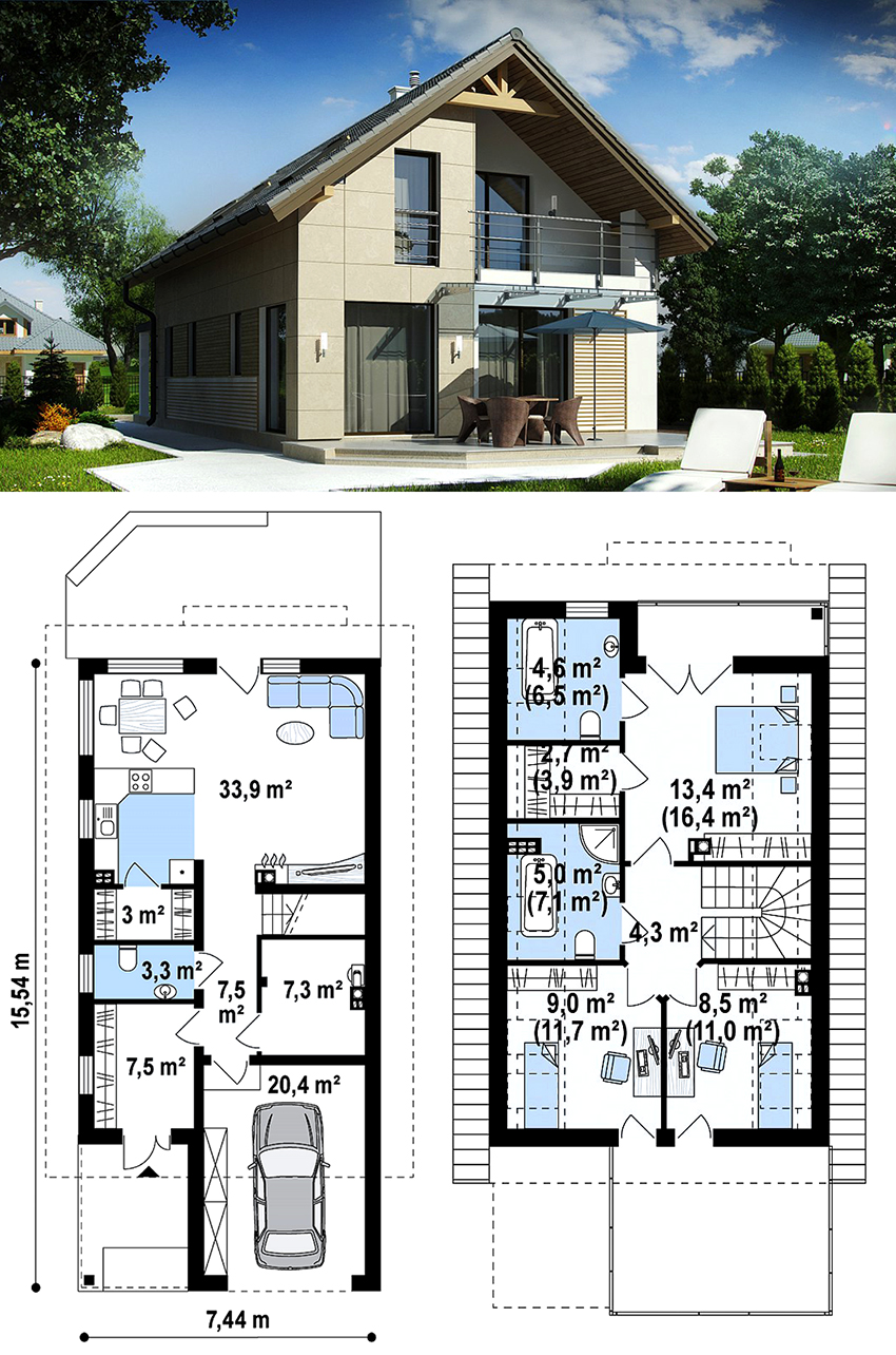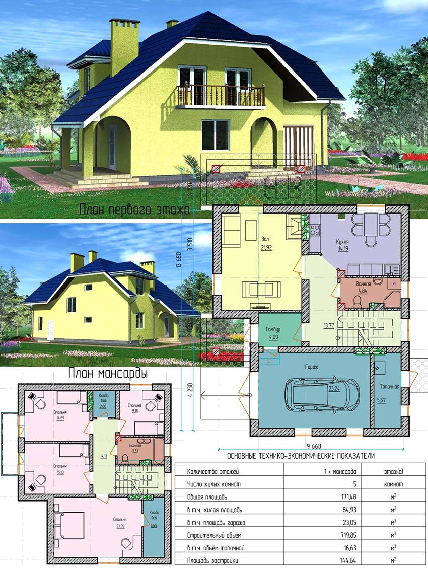 Для строения дома с мансардой и гаражом можно воспользоваться готовым проектом