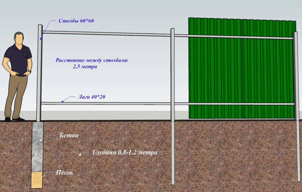 - расположение элементов каркаса забора со стороны хозяина ограды;