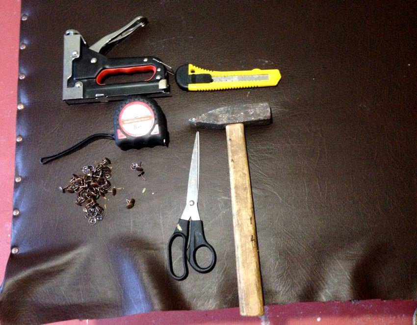 После, можно приступать к непосредственной обтяжке заменителем кожи всей поверхности.