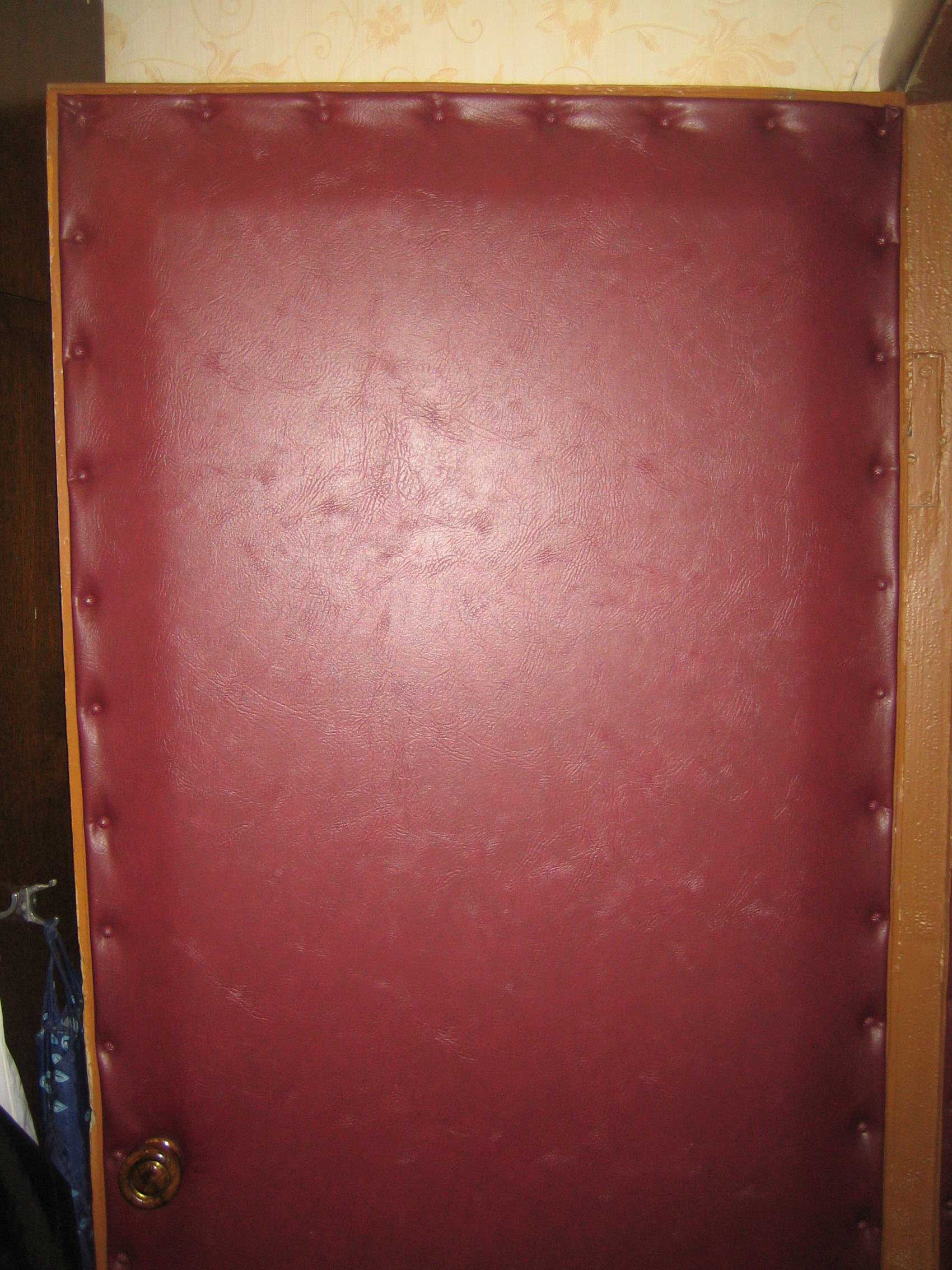 При отделке своими руками деревянных и металлических дверей дермантином, решается еще одна важная проблема: тепло- и звукоизоляция помещения. Дерматиновая обивка задерживает проникновение в жилье уличного шума и холода наружного воздуха.