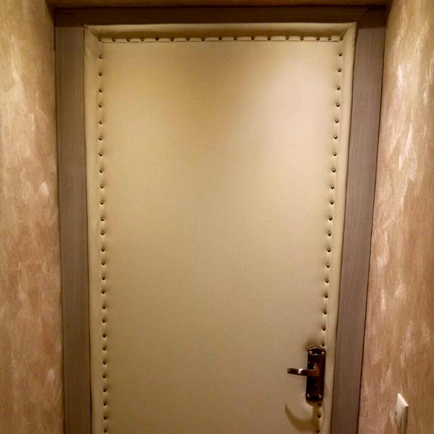 Проще всего своими руками выполнить мягкую обшивку двери. Это дерматин, винилискожа или натуральное кожаное покрытие. Можно использовать готовые комплекты для обивки дверных полотен. В них обычно входят: