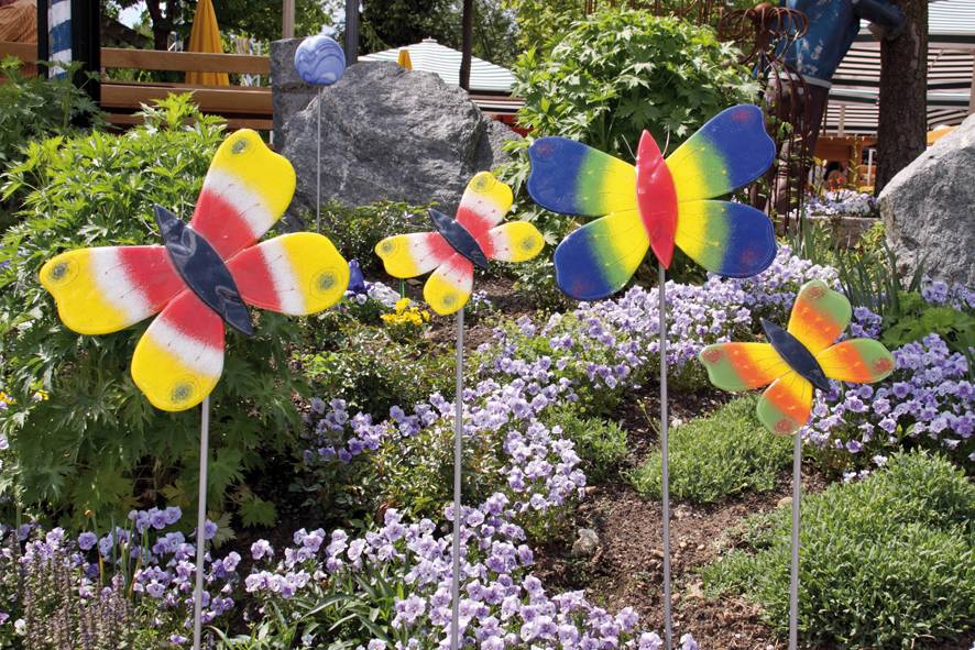 Все большую популярность завоёвывает создание декоративных поделок для приусадебной территории. Для изготовления таких элементов применяют шины, пластмассовые емкости и бутылки, деревянные детали, большие валуны.