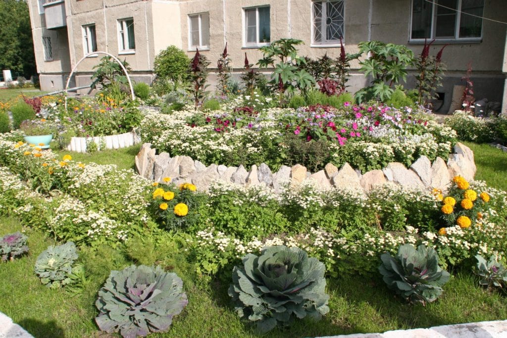 Совет! Для оформления грядок вдоль дорожки можно использовать вазоны с комнатными цветами, такими как герань, бегония, каллы и другие.