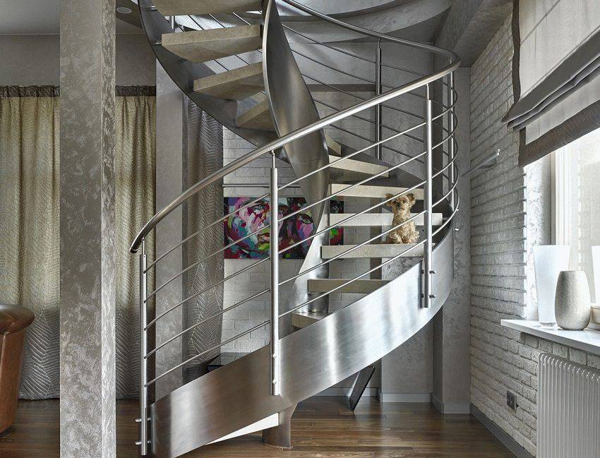 Ограждения и перила из нержавеющей стали для винтовых лестниц более сложные для проведения монтажных работ, ввиду необходимости повторять закругляющийся контур конструкции. Поэтому компоненты будущей лестницы из нержавеющей стали предварительно изгибают. Чаще всего для этой цели используется трубогибочный станок с ЧПУ.