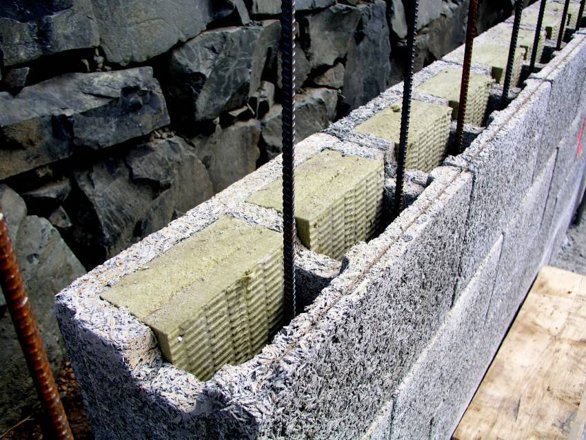 - Каркас нельзя считать полностью готовым, пока не будет осуществлено его утепление. В том случае, если имеют место большие объёмы заливаемой бетонной смеси, следует осуществить укрепление конструкции с помощью установки специальных распорок с наружной стороны. Их выполняют на некоторой дистанции между ними, которая нередко составляет что-то около восьмидесяти сантиметров.