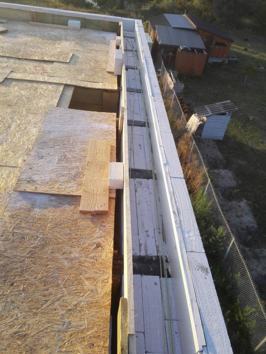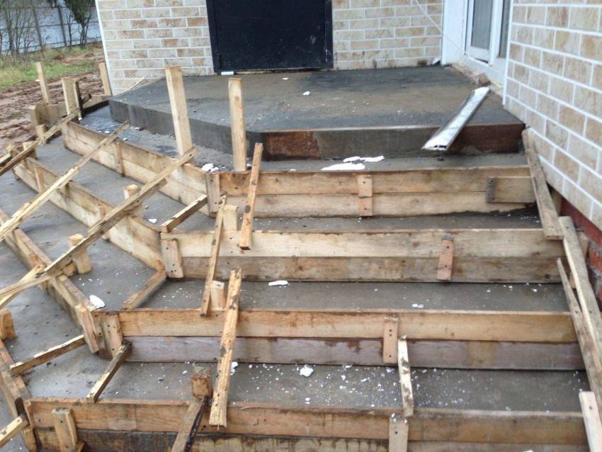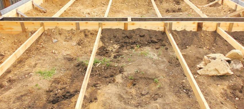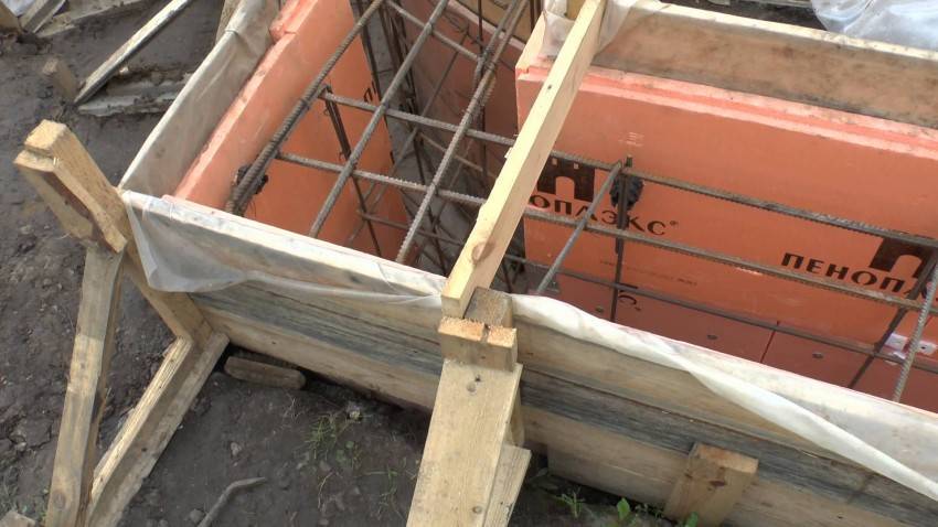 С помощью фанеры, досок или ОСБ-плит формируются вертикальные стенки для заливки монолитного бетона. Для фиксации стенок нужны бруски и подпорки толщиной 3-5 см.