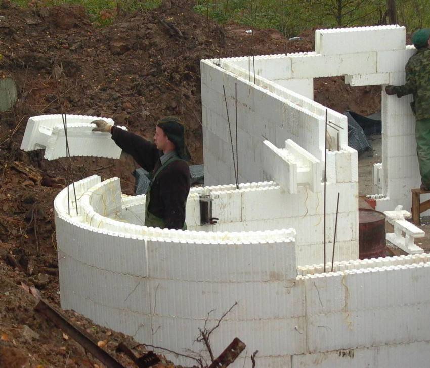 - пенополистирольных блоков, легко собираемых в цельную конструкцию и обладающих повышенной гидроизоляцией. Элементы крепятся несложно и позволяют придать каркасу необходимую форму;