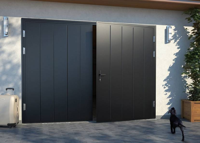 Самый распространённый и доступный вариант, представляющий собой две створки, распахивающиеся во двор или на улицу. Просты и надёжны в эксплуатации. Большинство производителей изготавливают их по индивидуальным размерам.