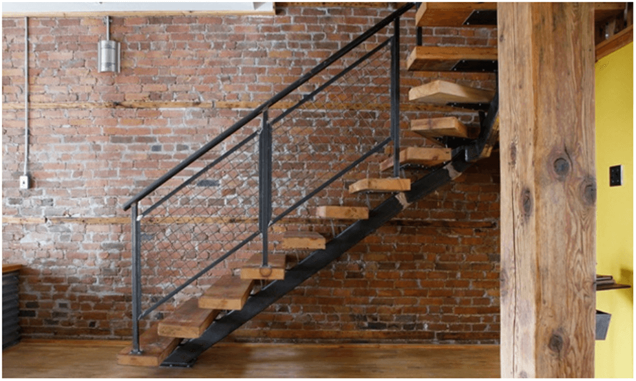 Данный стиль продиктован внутренним убранством заброшенных заводов и фабрик, поэтому лестница должна соответствовать концепции. Чаще всего в конструкции участвуют деревянные и металлические элементы, подчеркивая ее прочность, массивность. Декор практически полностью отсутствует, а в качестве перил великолепно смотрится грубый металл (железо, сталь, чугун).