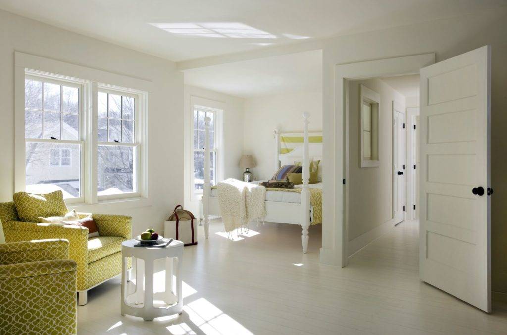 - Если комната перегружена мебелью, то сделать интерьер более легким сможет только белая дверь;