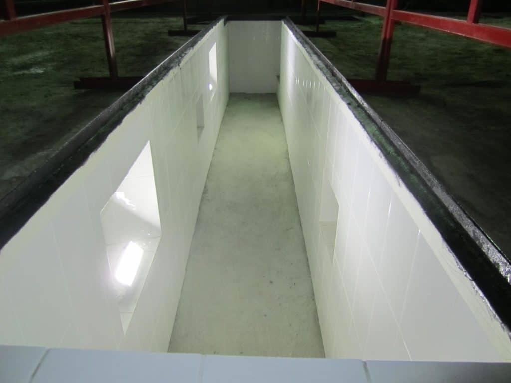В частности, используются галогенные и светодиодные. Но они также встроены в сетчатые чехлы для защиты от повреждений. Правильное положение — по бокам ямы.