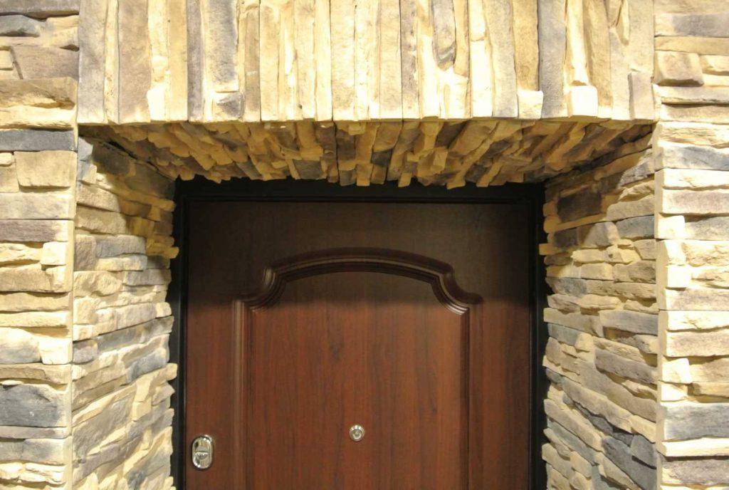 Правильная отделка откосов входной двери декоративным камнем: фото