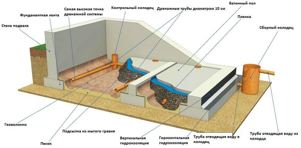 при высоком расположении грунтовых вод нужно проводить устройство дренажной системы;