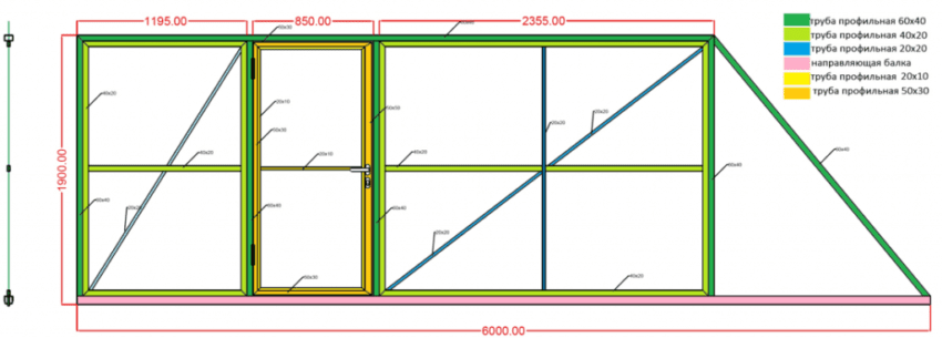 - Раму лучше изготавливать из профилированной трубы (60/30, от 2 мм) – ее потребуется 14,7 метров.