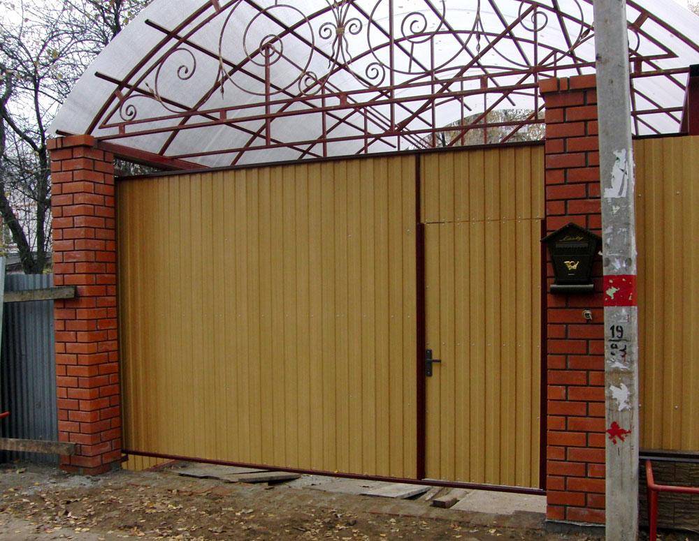 Основная составляющая ворот – металлическое полотно. Количество его зависит от высоты забора и размера въезда. Для строительства понадобятся следующие комплектующие: