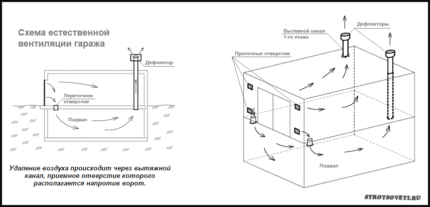 Циркуляция воздуха в гараже с ямой при естественной вентиляции