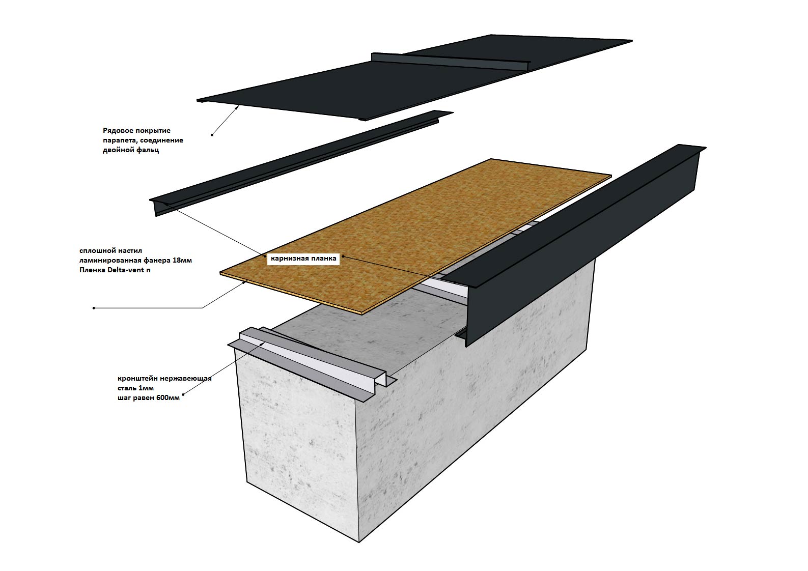 Конструкция парапетов полностью регламентируется СП 17.13330.2017. Кровли (ранее редакция СНиП II-26-76).