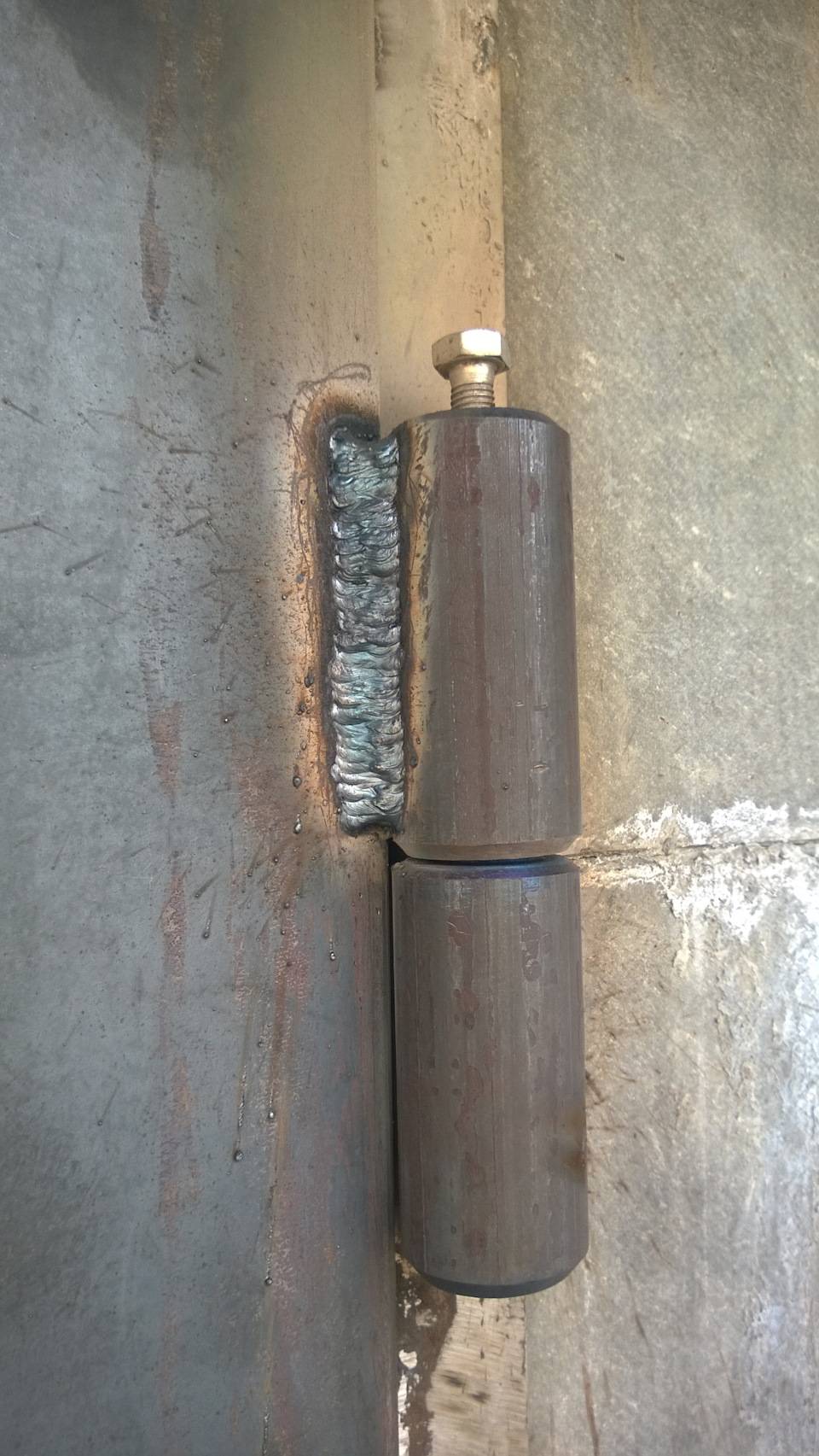 Полный размерВот и вырос сын — помощник Петли варили по месту, накрутив на них по обороту проволоки, чтобы выставить минимальный зазор между петлей и рамкой, чтобы не затирало при открытии