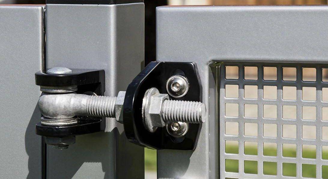 Скрытые шарниры имеют особую конструкцию, благодаря которой их можно легко спрятать за закрытыми воротами. Эти элементы крепятся к боковой части опорных столбов и внутренней части рамы.