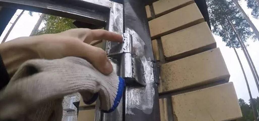 После приваривания петель поверхность зачищается от ржавчины, наносится слой грунтовки и краски. Во избежание посторонних звуков при открывании шарниры смазываются солидолом.