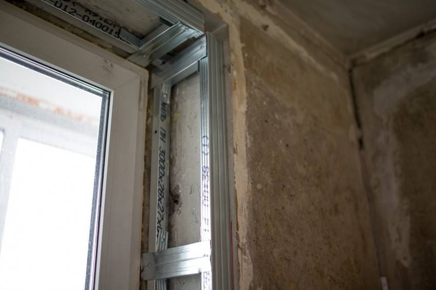 Многие модели пластиковых окон поставляются с профилем для изготовления каркаса под откосы из ГКЛ. В случае отсутствия такового, его можно приобрести в строительном магазине. Между профилями каркаса стоит уложить минеральную вату для утепления.