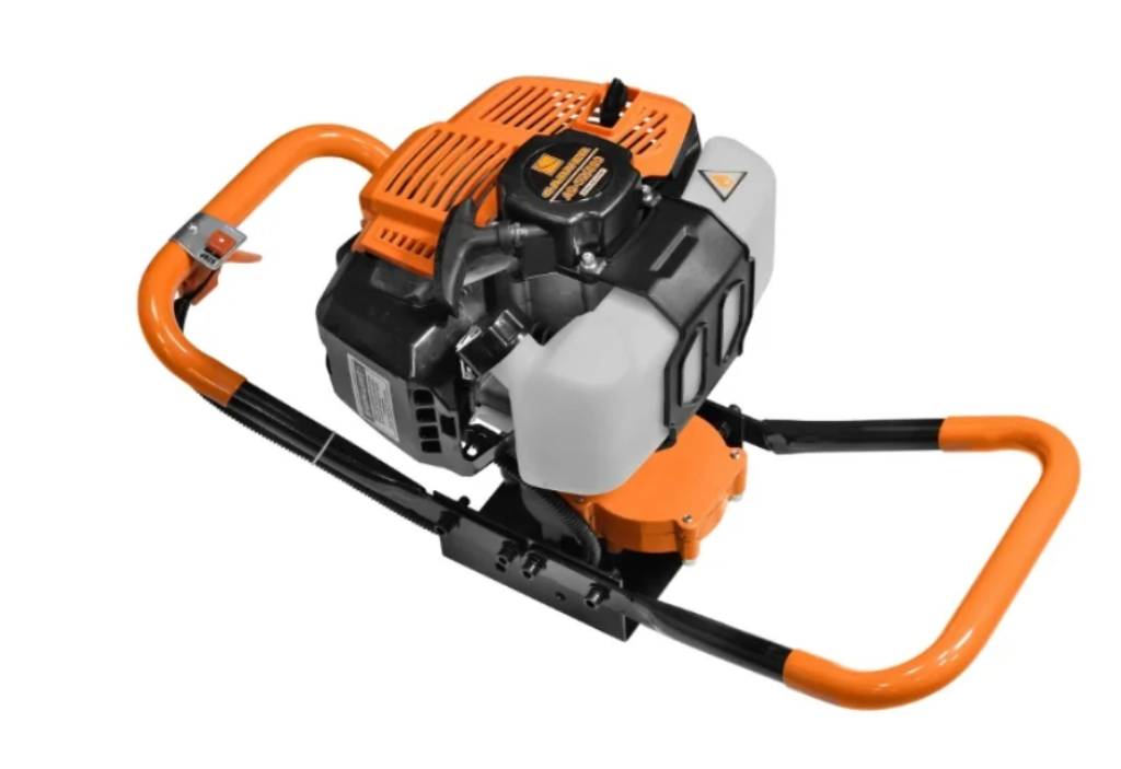 Неплохой бензиновый бур, предназначенный для почв любого типа. Двигатель модели имеет мощность 1,9 л. с. и двухтактный режим работы. Также прибор оснащен полупрозрачным бензобаком, который позволит без проблем определить уровень доступной топливной жидкости. Его объем составляет 0,8 литра, чего достаточно для бурения нескольких ям.