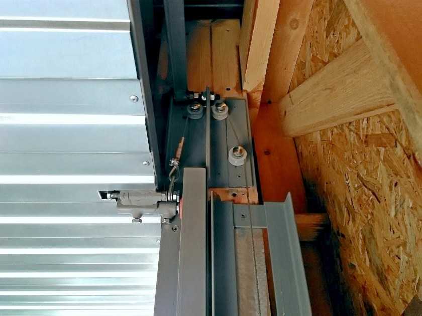 Заключительная часть работы для мастера – это установка подвижного механизма. Собранные ворота временно устанавливают в проём, чтобы отметить точки расположения направляющих пазов, противовесов и лебедки (или пружин).