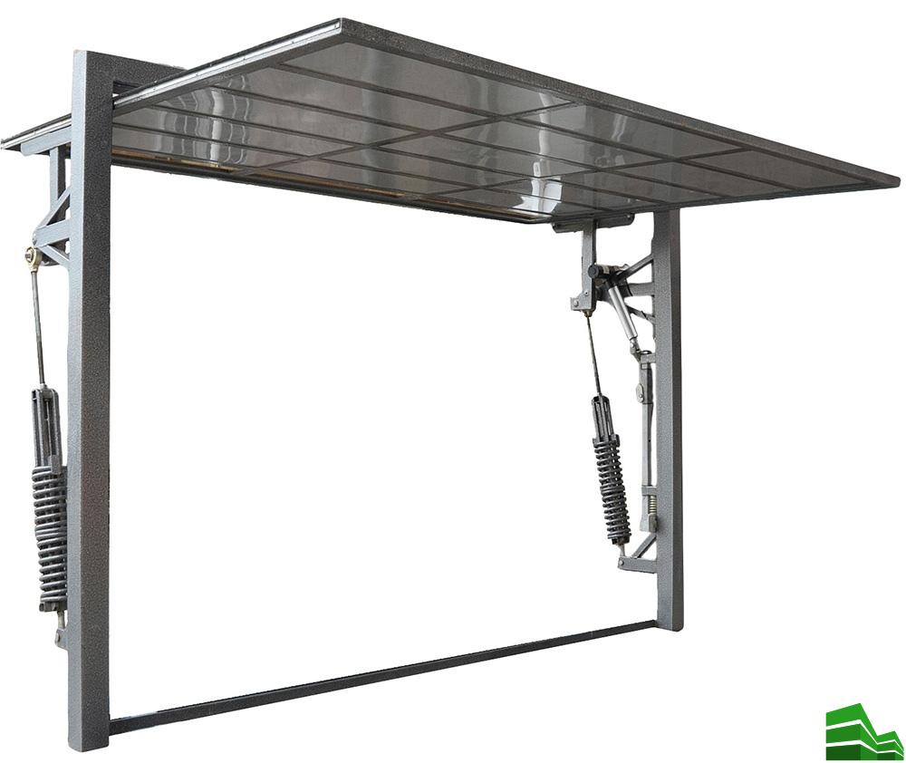 Конструкция состоит из рамы, которая изготовлена из металлического материала, направляющих элементов, противовеса или пружинного функционала. Вертикальный подъем происходит за счет растянутых пружин во встроенном механизме, который можно сделать качественнее благодаря подключению электропривода. Движения осуществляются вследствие нажатия кнопки.